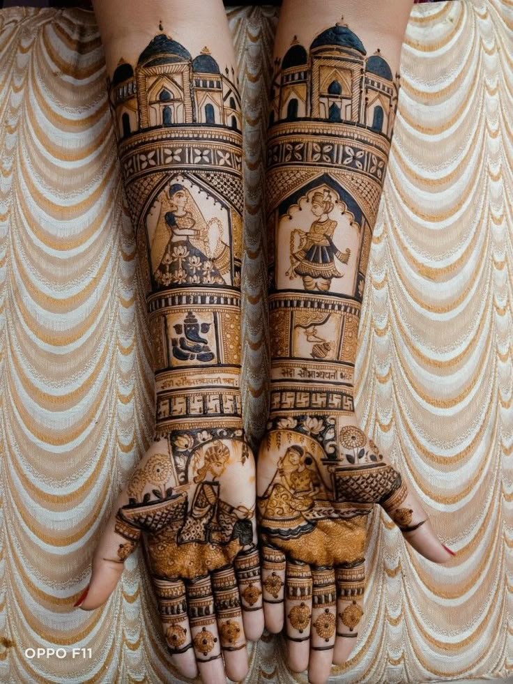 Regular mehndi with added glitter or colored stones